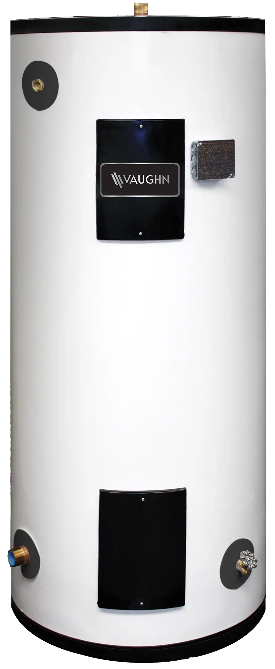 The Vaughn Geothermal Storage Tank is built to work alongside a ground-source heat pump. It stores water heated or chilled by ground source energy for hydronic, chilled water, or domestic hot water systems. A HydraStone-lined steel vessel and all-copper fittings handle varied water conditions and elevated temperatures. Built-in heat trap reduces standby heat loss, while a cold-water inlet and non-corrosive diffuser slows mixing to reduce turbulence inside the tank. Available with optional electric element backup and large plumbing connections for design flexibility.